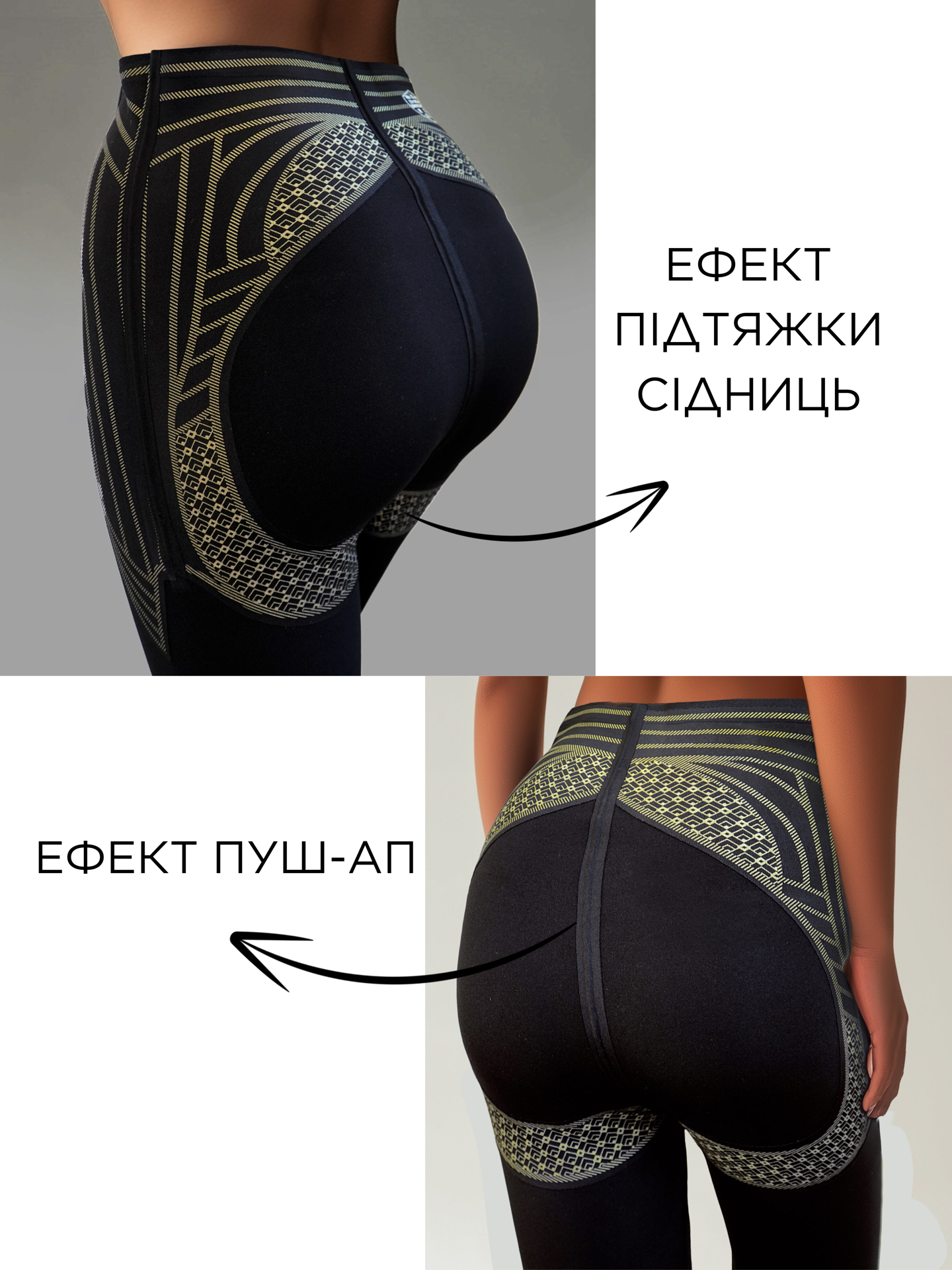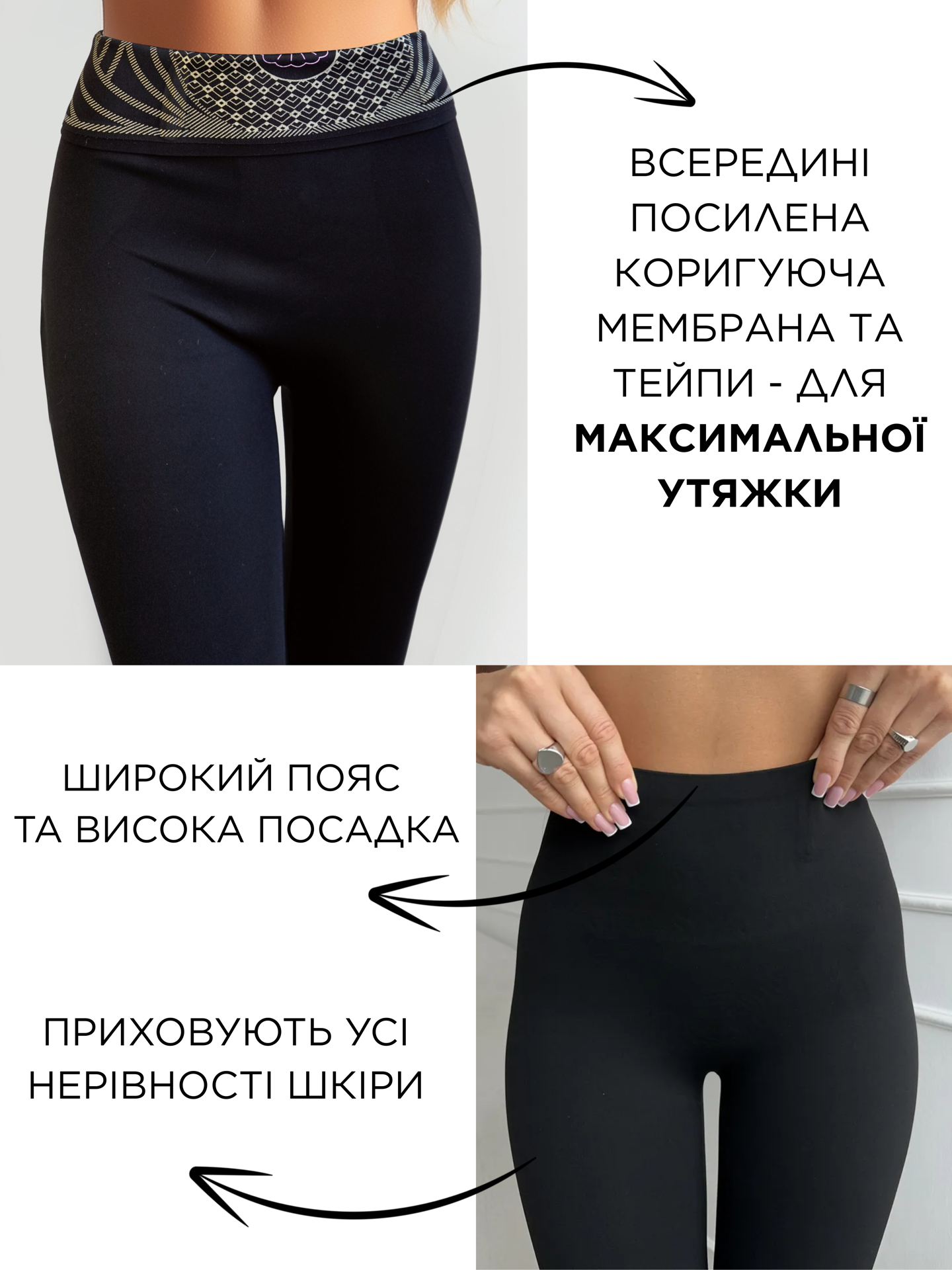 Лосини ефективно приховують целюліт та усі нерівності шкіри, коригують фігуру, приховуючи животик та додають привабливості завдяки пуш-ап ефекту на попі.
